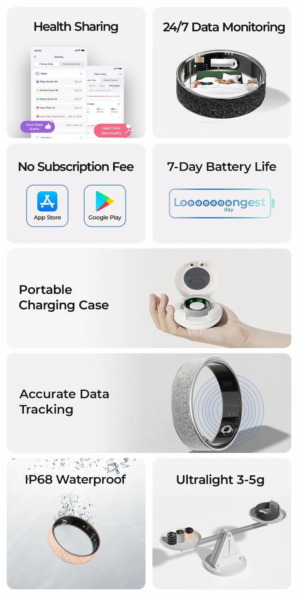 Seapoom smart rings are designed to help you better understand your daily health and habits. From tracking movement and monitoring sleep to providing valuable wellness insights, our smart rings make it easy to stay aware of your lifestyle in a simple and effortless way.