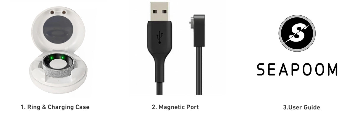 Open your Seapoom package and charge the ring with the provided case to activate Bluetooth.